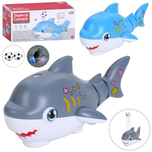 акула 25см. муз., світло, видуває повітря, 2 м`ячики, на бат. в кор. 24-12-11,5см. 683В (30)