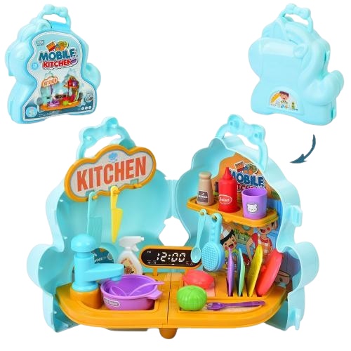 кухня мийка, ллється вода, посуд, продукти, 29 предм. у валізі в карт. обг. 23,5х27х9см. 8171 (36)
