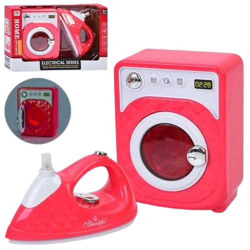 набір пральна машинка 18см. + праска 18см., звук, світло, на бат. в кор. 33х21х10см. 6867А (24)