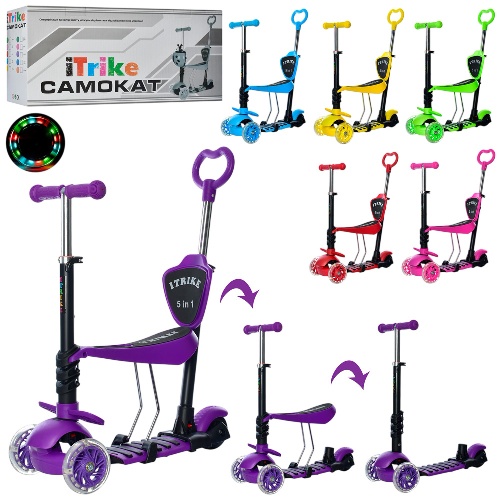самокат MAXI 5в1 сталь+пласт., 3колеса ПВХ (2 пер.120мм.,зад. 95мм.), в кор. JR 3-026-K (6)