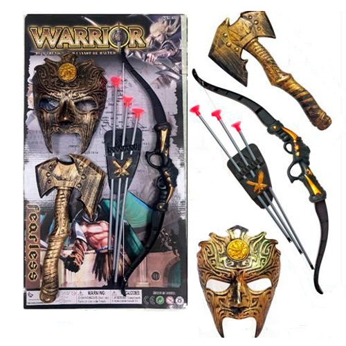 набір зі зброєю маска, сокира, лук, 3 стріли на бліст. 57,5х32х4см. 1688-96 (36)