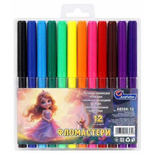 фломастери J.Otten 6816К-12 Принцеса 12кол. у жорсткому PVC (12/192)