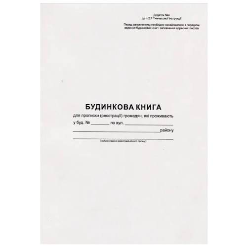 бланк газ. будинкова книга А4/16арк. (20)