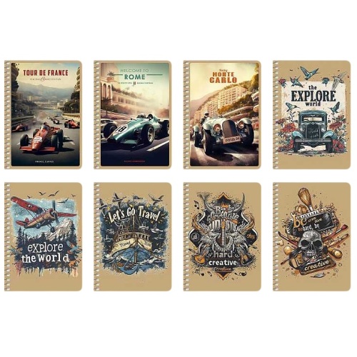 блокнот А6 80арк. на спіралі, крафт, ВД-лак, крем. блок, кліт. "Student" A6-SC-080-6143К (144)