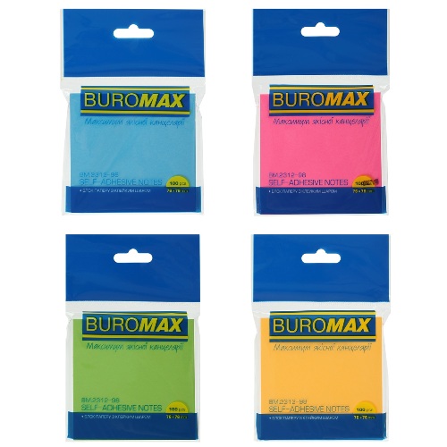 блок з клейким шаром Buromax 76х 76мм. 100арк. неон асорті ВМ.2312-98 (12/216)