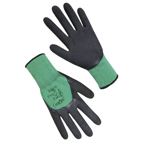 рукавиці Seven синтетичні зелені з чорним спіненим латексним покриттям 70028 (12)