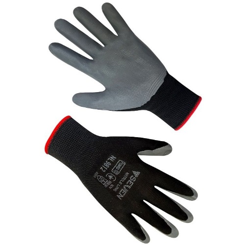 рукавиці Seven синтетичні чорні з сірим нітриловим покриттям 69812 (120)