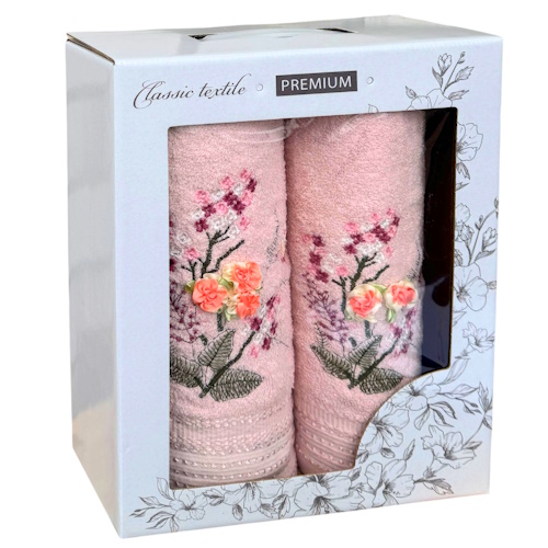 набір рушників 2шт. "Троянди" (1шт. 70х140см. + 1шт. 45х90см.) в подар. кор.