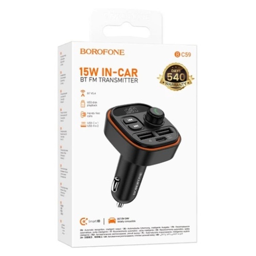 автомобільний зарядний пристрій Borofone з FM-модулятором Heroic BC59