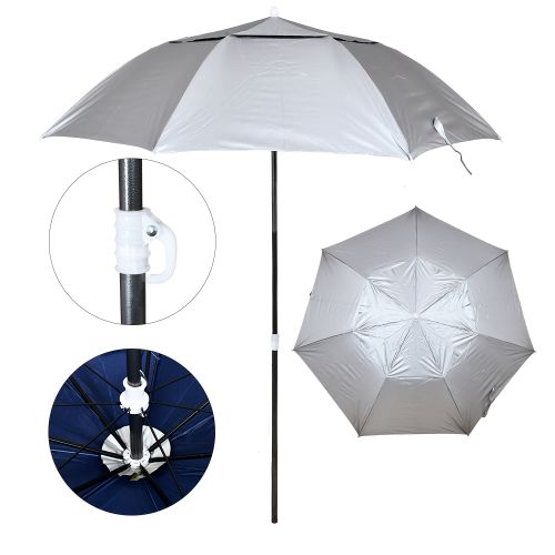 парасолька пляжна d-2,0м. антивітер, срібло, з триножкою, кілочками та мотузкою МН-2712 (20)