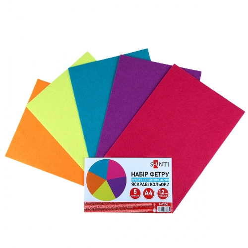 фетр Santi А4 м`який з клейовим шаром, 5 арк., яскраві кольори 743256 (1/200)