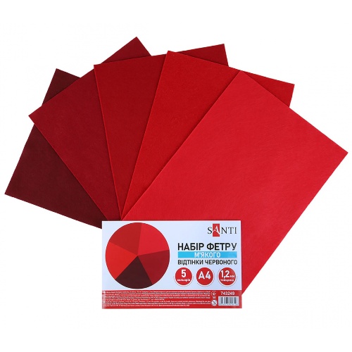 фетр Santi А4 м`який, відтінки червоного, 5 арк. 743249 (1/200)