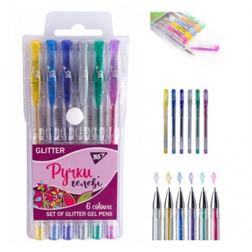 набір гел. ручок YES "Glitter" 6кол. 411702 (10/100/200)