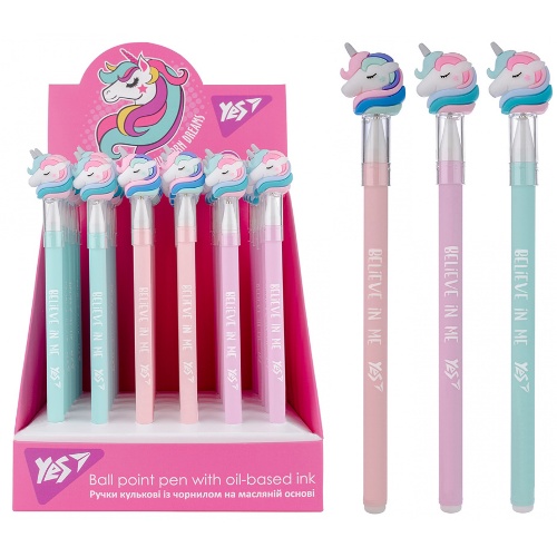 ручка YES "Unicorn dreams" кульк. масл. синя 0,7мм. 412012 (36/1296)