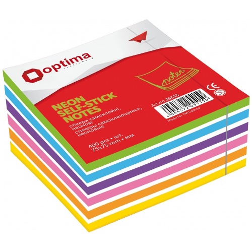 блок з клейким шаром Optima 75х75мм. 400арк. неон mix О25515 (6/96)