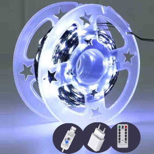 електрогірлянда роса на котушці 1000 LED, 100м., реле, USB, пульт д/к, білий колір 19091-03