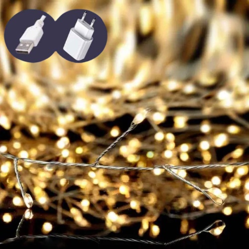 електрогірлянда штора мішура 200 LED, 3х0,6м., 10 ліній, 8 реж., USB, теплий білий колір 1945-07