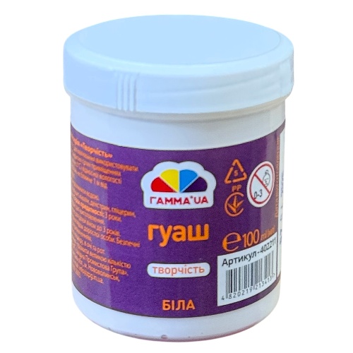 фарба гуашева Гамма (НВ) Творчість біла 100мл. 402211 (36)
