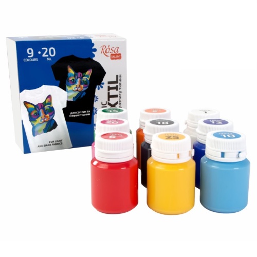 фарби акрилові для розпису тканин ROSA TALENT 9кол.х20мл. 134920
