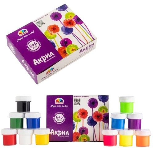 фарби акрилові Гамма (НВ) Творчість 12кол./10мл. (6 основних + 6 флюоресцентних) 400506 (12)