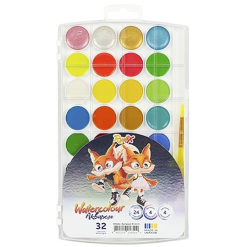 фарби акварельні Гамма (НВ) "Rudix" 32кол. (24+4 перл.+4 флуор.) пласт.кор. з пензликом 813213 (5)