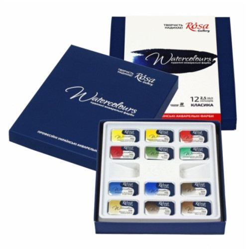 фарби акварельні ROSA Gallery "Класика" 12кол., кювета, картон 340012