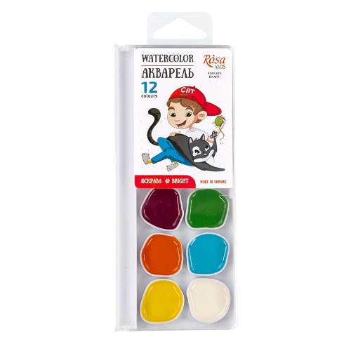 фарби акварельні ROSA Kids "Cats with a Boy" 12кол. без пензлика 301203