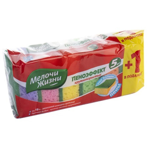 губка кухонна Мелочи жизни з великими порами Піноефект набір 5+1шт. 0341 CD (40)