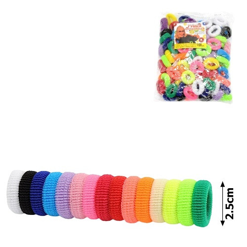 гумка для волосся Калуш кольорова махрова яскрава d-2,5см. "100" за упак. 100шт. (003105)