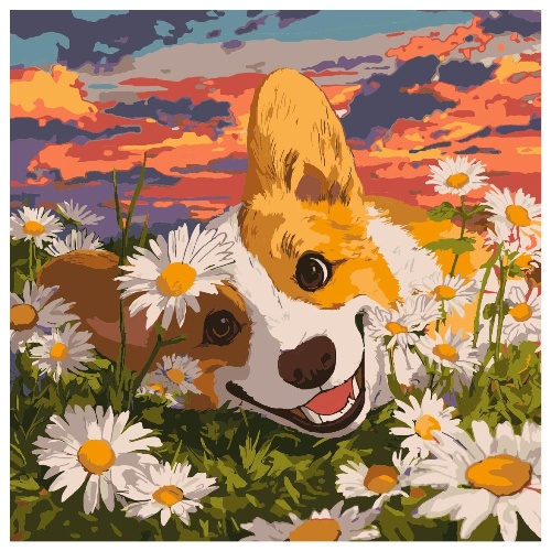 картина за номер. Ідейка 40х40см. "Коргі в ромашках" КНО6798