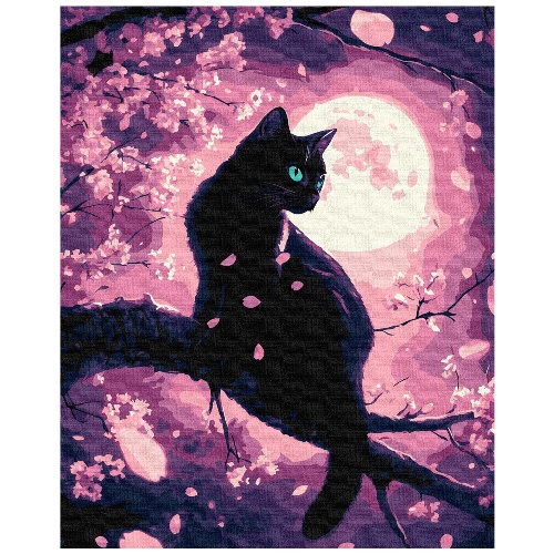 картина за номер. Ідейка 40х50см. "Чарівний кіт серед сакури" з фарбами металік КНО6757