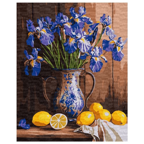 картина за номер. Ідейка 40х50см. "Іриси у вазі та лимони" КНО3319