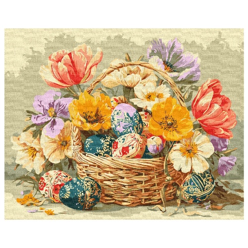 картина за номер. Ідейка 40х50см. "Великодній кошик з квітами" КНО5186