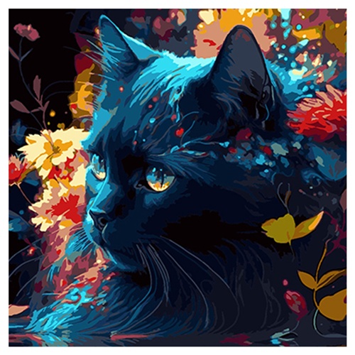 картина за номер. Strateg 40х40см. "Чорний кіт і квітковий мотив" AV4040-49