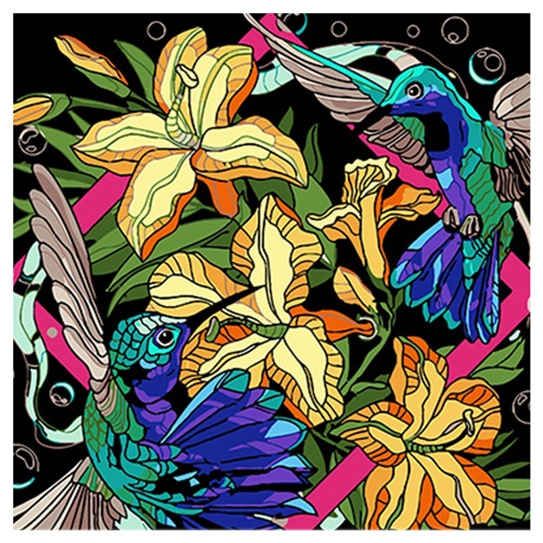 картина за номер. Strateg 40х40см. "Колібрі в яскравих тонах" AV4040-68
