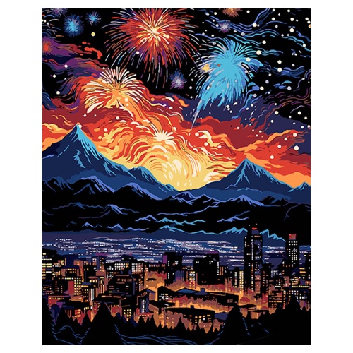 картина за номер. Strateg 40х50см. "Нічне місто з феєрверками" АН1068