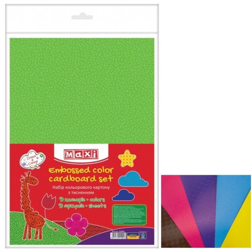 картон кольоровий Maxi А4/9арк./9кол. з тисненням МХ21004 (10/50)