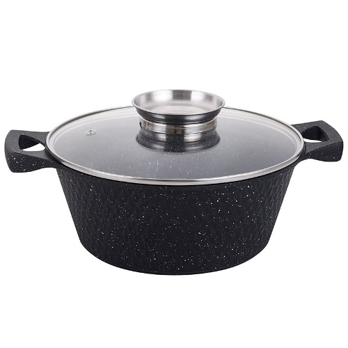 каструля алюм. кругла 3,6л. зі скляною кришкою, індукційна, чорна YS8024-B