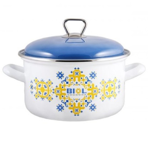 каструля емальована 5,6л. з мет. кришкою 24см. Вишиванка жовто-блакитна CE24V1