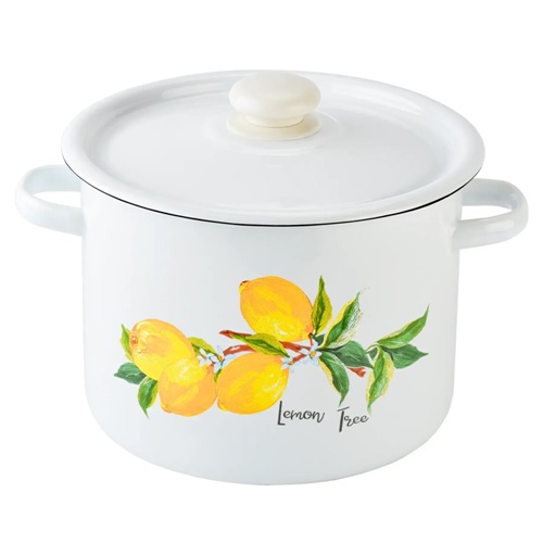 каструля емальована циліндрична 5,5л. Лимонне дерево з полими ручками 1624/2