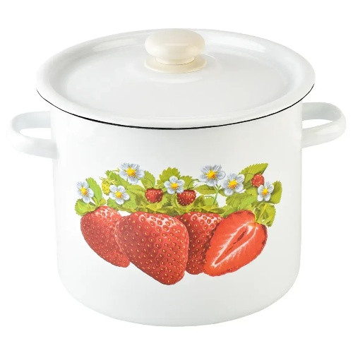 каструля емальована циліндрична 7,0л. Полуниця з полими ручками 1620/2