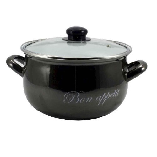 каструля емальована глибока зі скляною кришкою Bon appetit чорний 4,0л. d-20см. 2234А