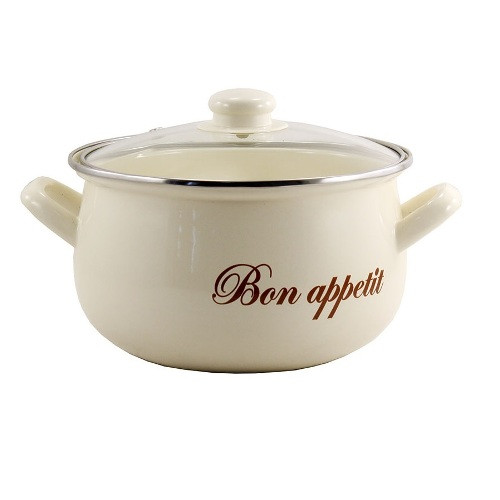каструля емальована глибока зі скляною кришкою Bon appetit кремовий 5,0л. d-22см. 570