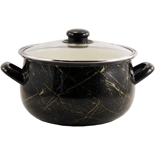 каструля емальована глибока зі скляною кришкою Чорний мармур 5,0л. d-22см. 700 А