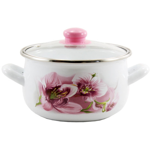 каструля емальована глибока зі скляною кришкою Орхідея рожева 5,1л. d-22см. 5 LA