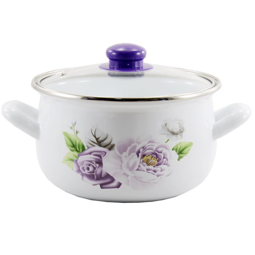 каструля емальована глибока зі скляною кришкою Троянда фіолетова 4,0л. d-20см. 2 LA