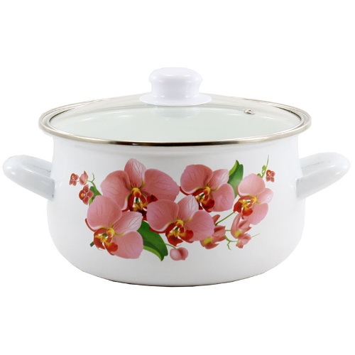 каструля емальована зі скляною кришкою Орхідея-1 рожева 5,0л. d-24см. 1W