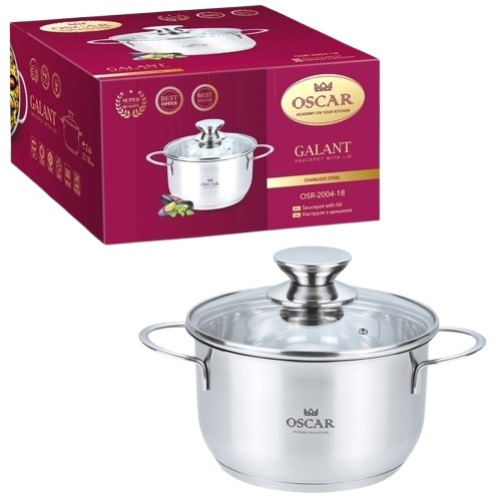 каструля Oscar Galant нержав. зі скляною кришкою 18см. OSR-2004-18
