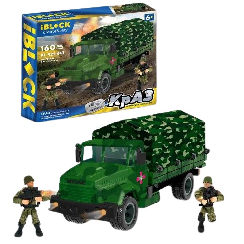 конструктор IBLOCK Армія КрАЗ з тентом 160дет., 2 фігурки, в кор. 28,5х6,4х25см. PL-921-443 (12)