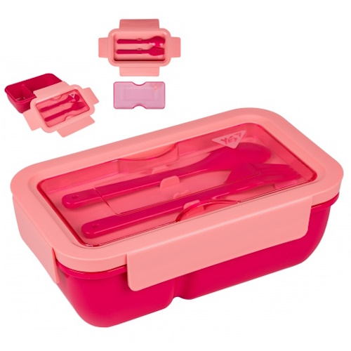 контейнер для їжі YES 850мл. "Fusion" з приладдям, рожевий 708169 (25/50)